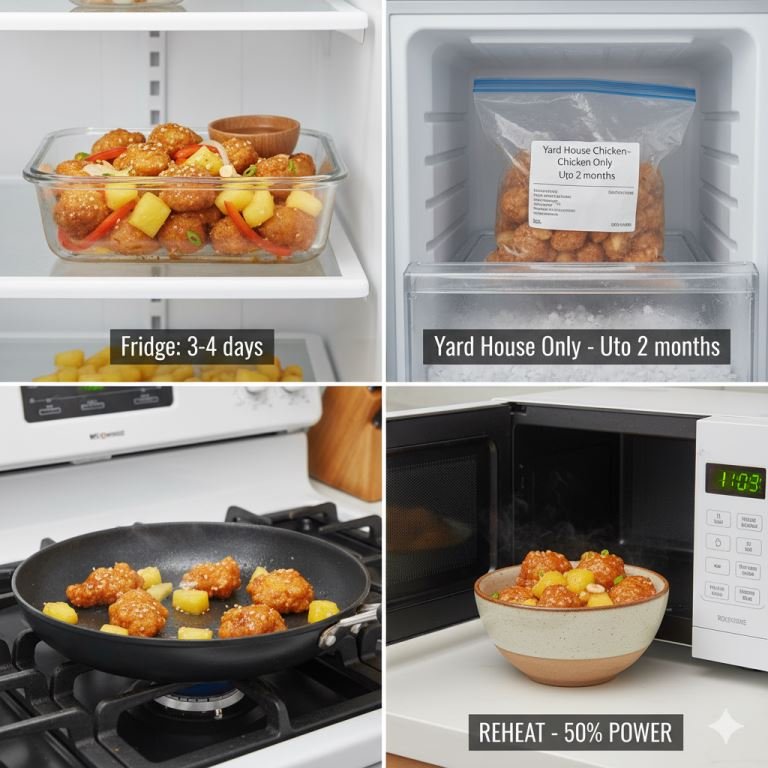 - Freezer: chicken only (pineapple gets mushy), up to 2 months